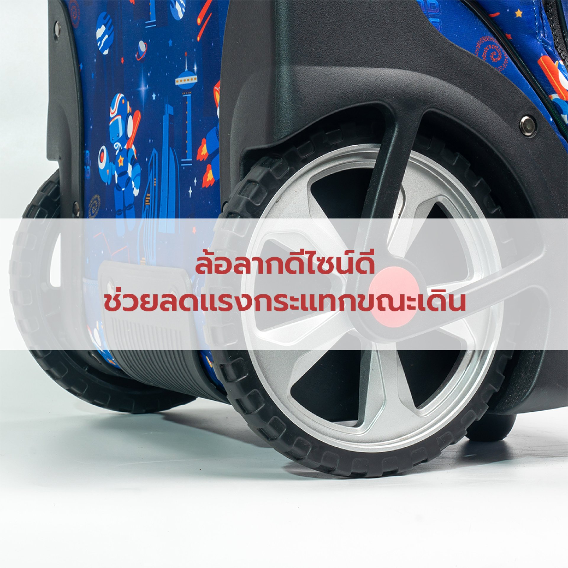 ป้องกันอาการเจ็บมือหรือข้อมือจากแรงสั่นสะเทือน เด็กบางคนต้องหยุดพักกลางทาง เพราะรู้สึกมือชา หรือข้อมือเกร็ง ล้อดูดซับแรงได้ดีจะลดปัญหานี้ และทำให้ลูกสามารถลากกระเป๋าได้ต่อเนื่องโดยไม่เจ็บ