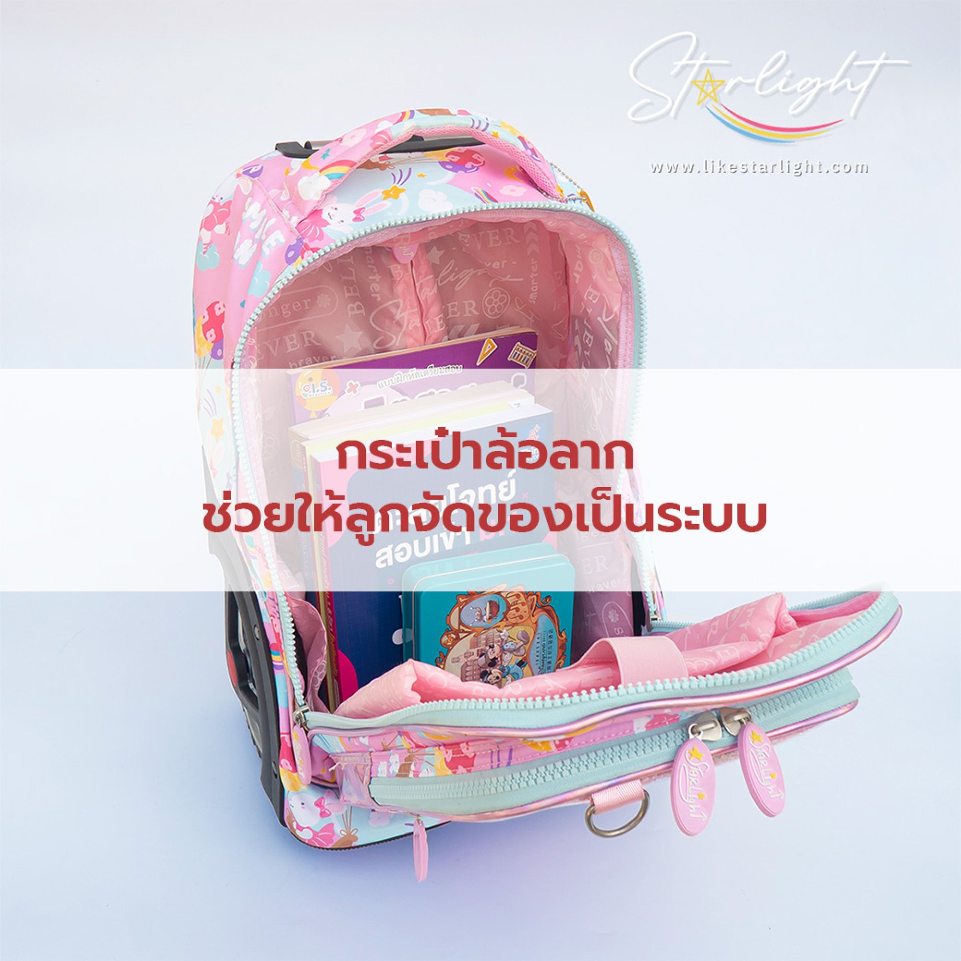 กระเป๋าล้อลาก: เครื่องมือฝึกวินัยอย่างไม่รู้ตัว กระเป๋าล้อลากมีข้อดีที่มากกว่าการช่วยให้เด็กไม่ต้องแบกน้ำหนักมากเกินไป เพราะดีไซน์ที่มีช่องเก็บของหลายประเภททำให้เด็กสามารถแยกสิ่งของตามหมวดหมู่ได้ เช่น หนังสือเรียน สมุดการบ้าน อุปกรณ์ศิลปะ ขวดน้ำ และกล่องอาหาร การแยกของชัดเจนเช่นนี้ช่วยลดปัญหาของหาย และทำให้เด็กจดจำตำแหน่งสิ่งของได้ง่ายขึ้น