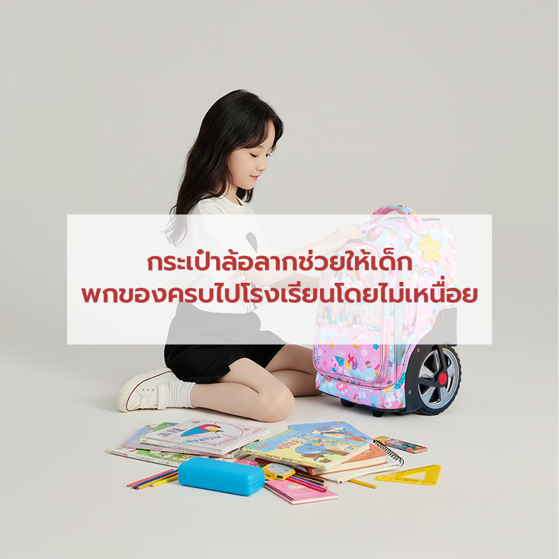 กระเป๋าล้อลาก คำตอบของการพกของครบถ้วน กระเป๋าล้อลากถูกออกแบบมาเพื่อกระจายน้ำหนักลงบนล้อ เด็กไม่จำเป็นต้องรับแรงกดบนบ่าและหลังเหมือนกระเป๋าสะพาย จึงสามารถใส่ของเรียนได้ครบถ้วนโดยไม่รู้สึกเหนื่อย การลากกระเป๋าไปตามพื้นใช้แรงน้อยกว่าการสะพายหลายเท่า ทำให้แม้เด็กตัวเล็กก็สามารถพกอุปกรณ์ทั้งหมดที่ต้องใช้ในแต่ละวันได้อย่างง่ายดาย