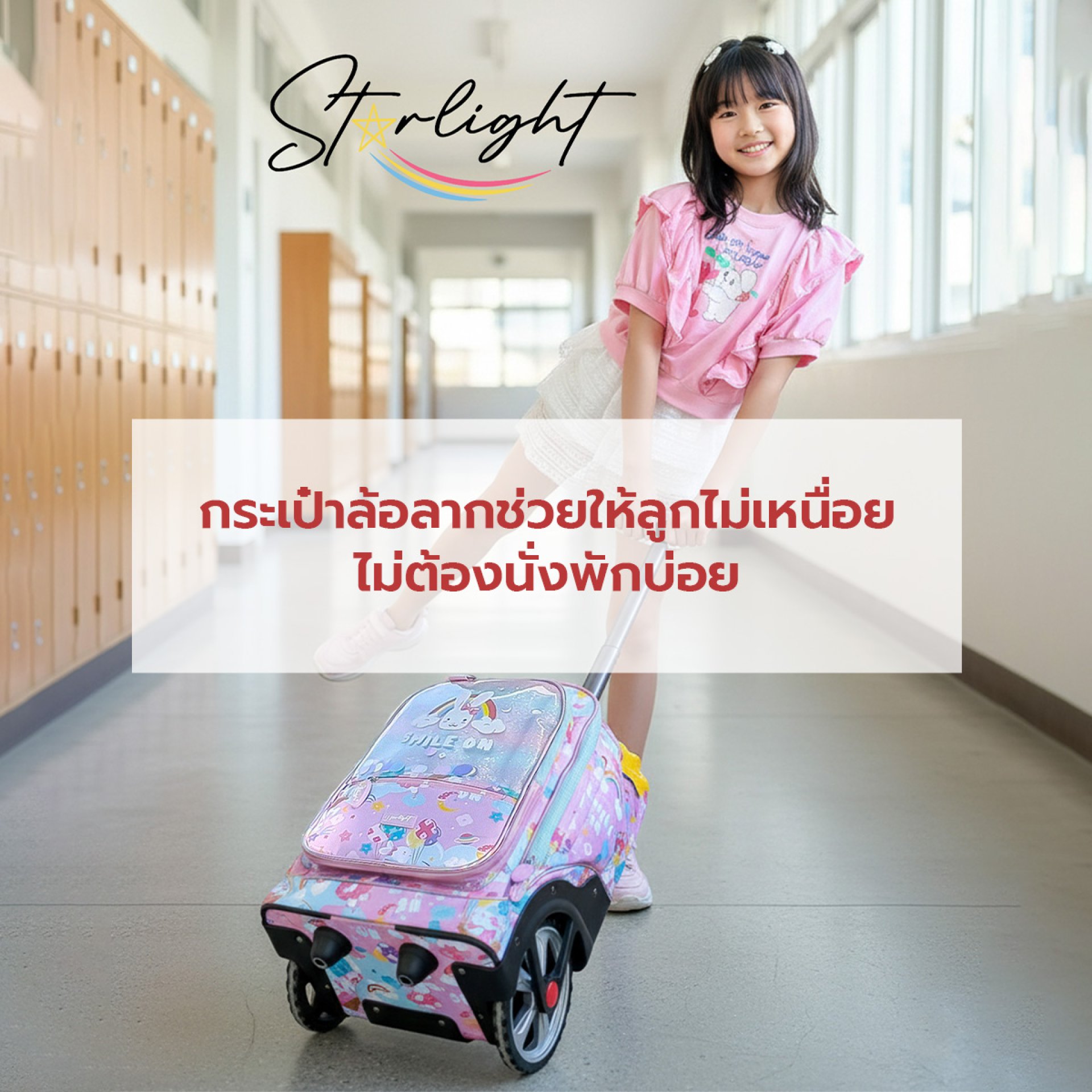 กระเป๋าล้อลากคือทางออกที่ช่วยลดความเหนื่อยล้า กระเป๋าล้อลากถูกพัฒนาขึ้นเพื่อแบ่งเบาภาระการแบกของเด็ก ด้วยล้อและด้ามจับที่ช่วยให้การเคลื่อนย้ายกระเป๋าเป็นเรื่องง่าย เด็กสามารถลากไปกับพื้นโดยไม่ต้องใช้พลังงานมากเหมือนการสะพาย เมื่อไม่ต้องกดน้ำหนักไว้บนไหล่หรือหลัง เด็กจึงมีแรงเหลือสำหรับเดินต่อโดยไม่ต้องหยุดพักบ่อย ๆ การเดินทางไปโรงเรียนจึงราบรื่นขึ้น ร่างกายก็ไม่เหนื่อยจนเกินไป