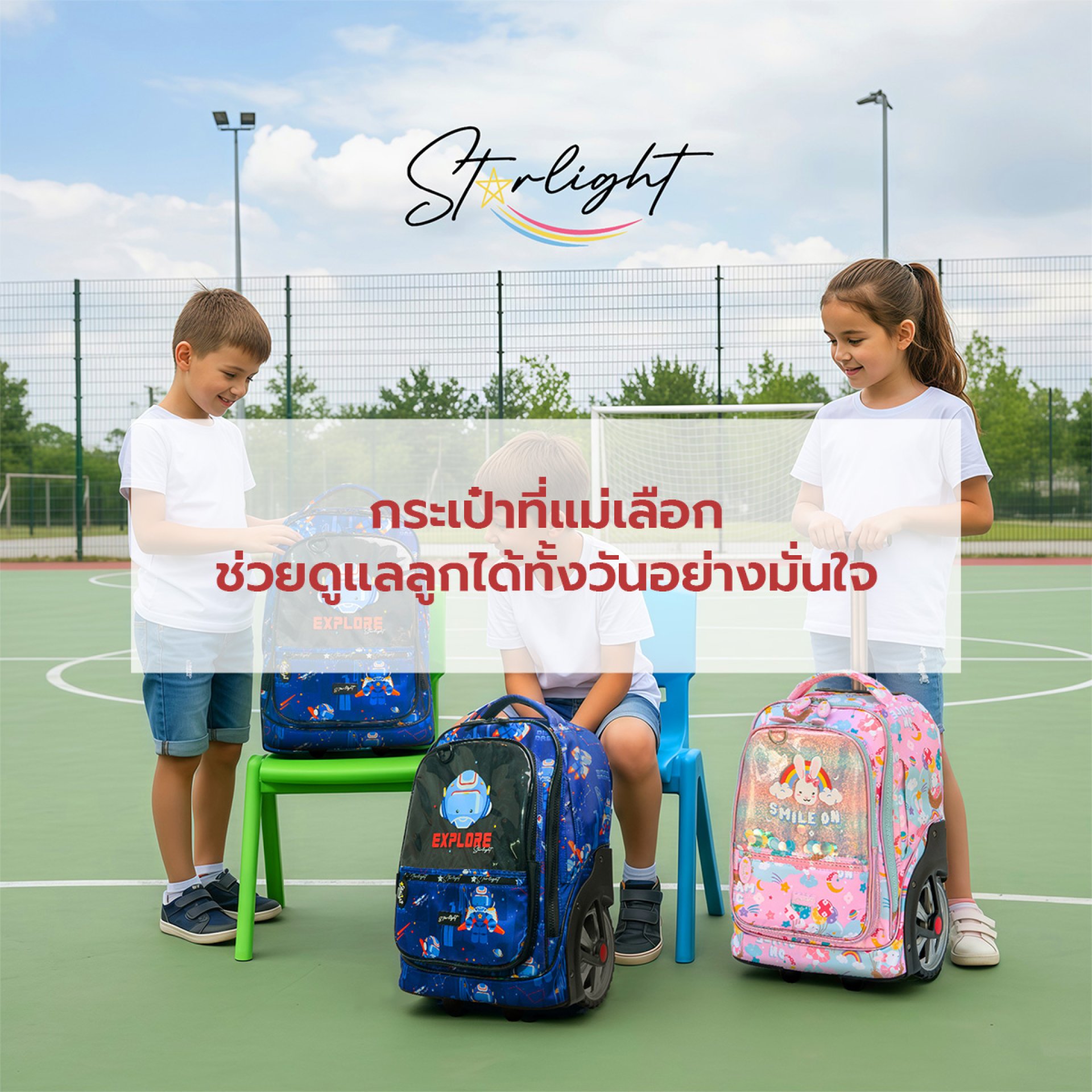กระเป๋าที่แม่เลือก คือความรักที่มองเห็นได้ ในแต่ละวัน ลูกต้องเผชิญกับภารกิจมากมาย ทั้งเรียนหนังสือ ทำกิจกรรม และเล่นกับเพื่อน กระเป๋าที่แม่เลือกคือสิ่งที่อยู่เคียงข้างลูกตลอดวัน เป็นตัวแทนของความรัก ความห่วงใย และการดูแลอย่างไม่สิ้นสุด การลงทุนเลือกกระเป๋าที่ดีจึงไม่ใช่เรื่องเล็ก แต่คือการลงทุนใน ความสุขและสุขภาพของลูก ที่จะอยู่กับเขาไปอีกนาน แม่เลือกด้วยใจ Starlight ออกแบบด้วยความเข้าใจ เพื่อให้ทุกวันของลูกเต็มไปด้วยรอยยิ้มและการเรียนรู้อย่างมั่นใจ
