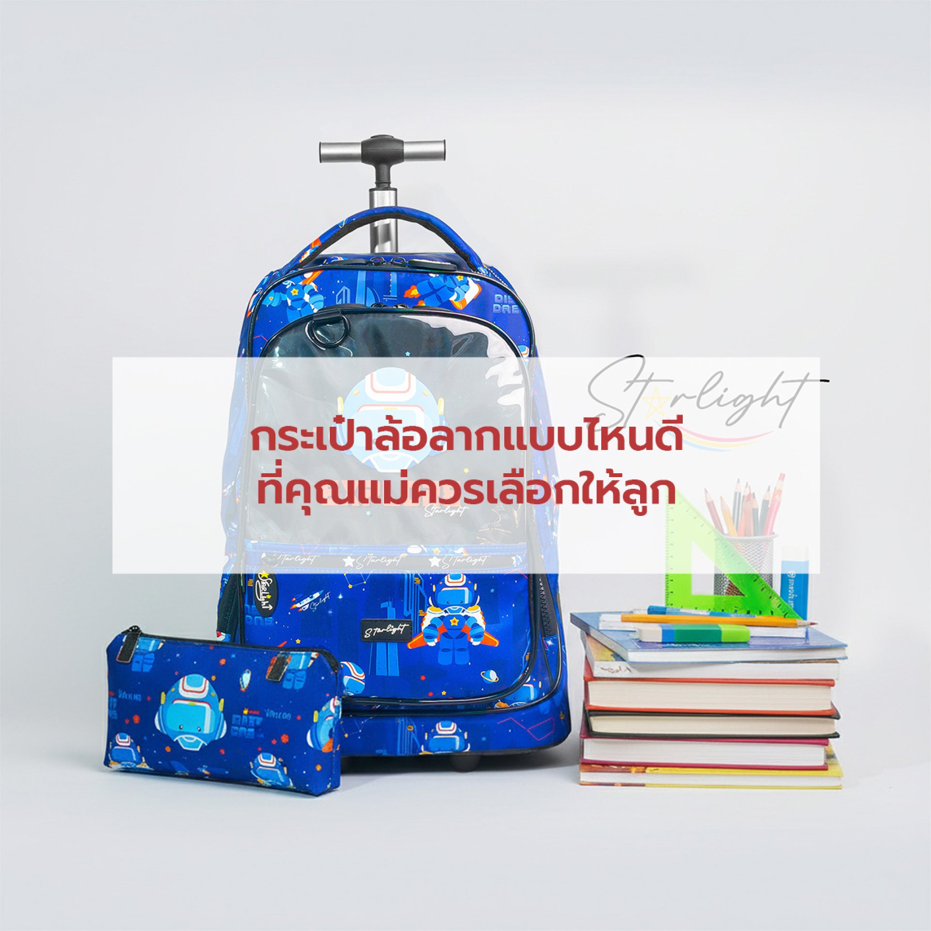 ตัวอย่างกระเป๋าล้อลากที่ได้รับความนิยม ในตลาดมีกระเป๋าหลากหลายแบรนด์ แต่หนึ่งในแบรนด์ที่ได้รับเสียงชื่นชมจากคุณแม่จำนวนมากคือ Starlight เพราะออกแบบมาเพื่อเด็กโดยเฉพาะ ทั้งในด้านดีไซน์และฟังก์ชัน รุ่นยอดนิยม เช่น The Dreammer และ The Explorer มีจุดเด่นที่ล้อใหญ่ ลากง่าย กันน้ำได้ดี และมีฐานแข็งแรง ปกป้องของใช้ภายในจากแรงกระแทก เหมาะกับเด็กวัยประถมทุกช่วง นอกจากนี้ สีสันสดใสยังช่วยเสริมความมั่นใจให้ลูกอยากไปโรงเรียนทุกวัน